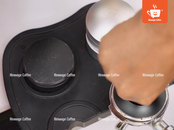 Kiểm tra: Lật ngược rổ, bột không rơi ra là ép đủ chặt. Không ép quá mạnh - gây áp lực lên máy, chiết xuất chậm.